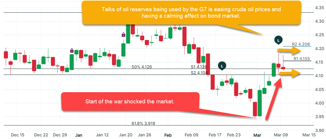 Last week we talked about geopolitical risk pushing rates higher, and we saw another quick spike again this week. The main driver was oil prices jumping toward $120/barrel after tensions escalated in Iran and shipping concerns around the Strait of Hormuz.
